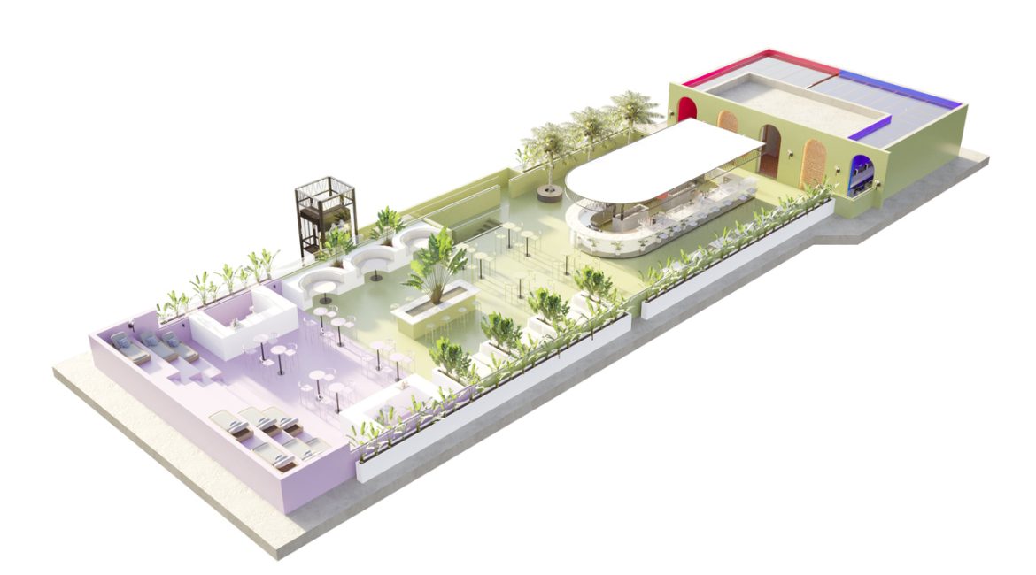 O Banana é um rooftop ao ar livre que oferece uma experiência única, com uma área social integrada, composta por bancadas, pista de dança, bar e zonas de assentos para pequenas refeições. Este design aberto permite uma vista panorâmica do mar em 360 graus, transmitindo uma sensação de proximidade com a natureza.